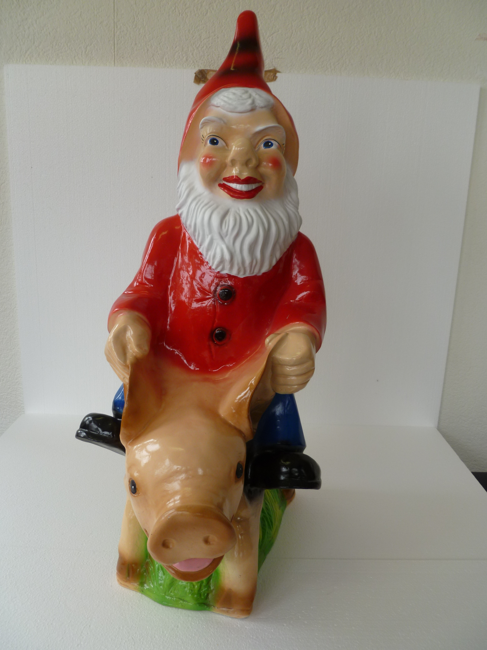 / Gartenzwerg-auf lachendem Schwein