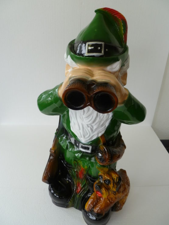 / Gartenzwerg Jäger ins Fernglas schauend