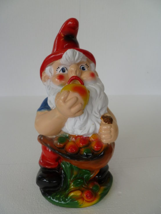 Gartenzwerg mit Fliegenpilz und Schnecke