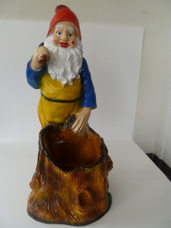 Gartenzwerg mit Baumstamm